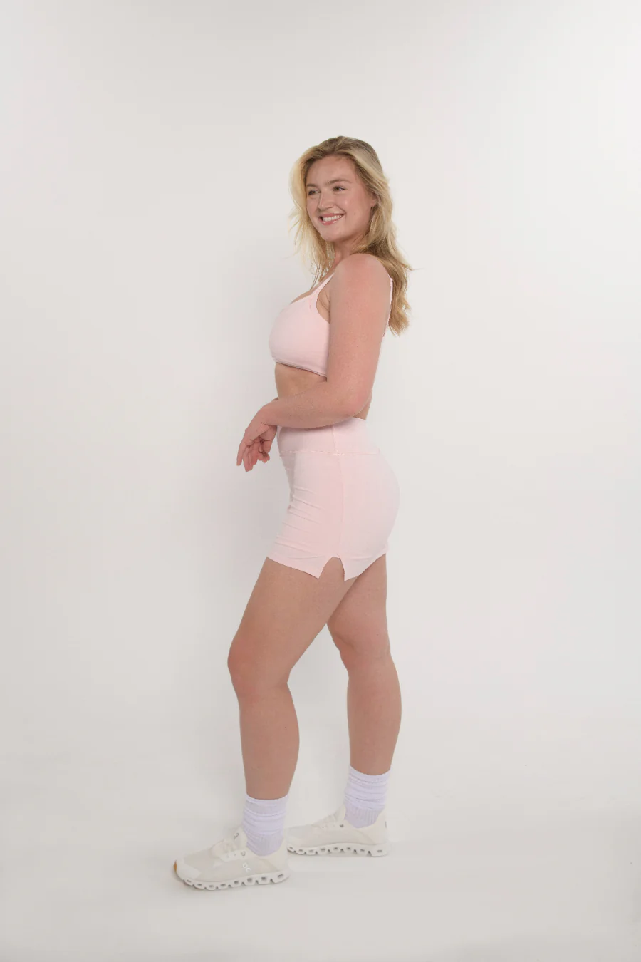 We have double the love for the Layered Bra that sports two layers of our buttery soft nylon and spandex fabric blend. With adjustable double straps and elevated layered construction, this sports bra is ideal for both the studio and the street, especially when paired with our Essentials Shorts. It's designed for maximum support and comfort, featuring fully lined back and front panels, making it perfect for all bust sizes.